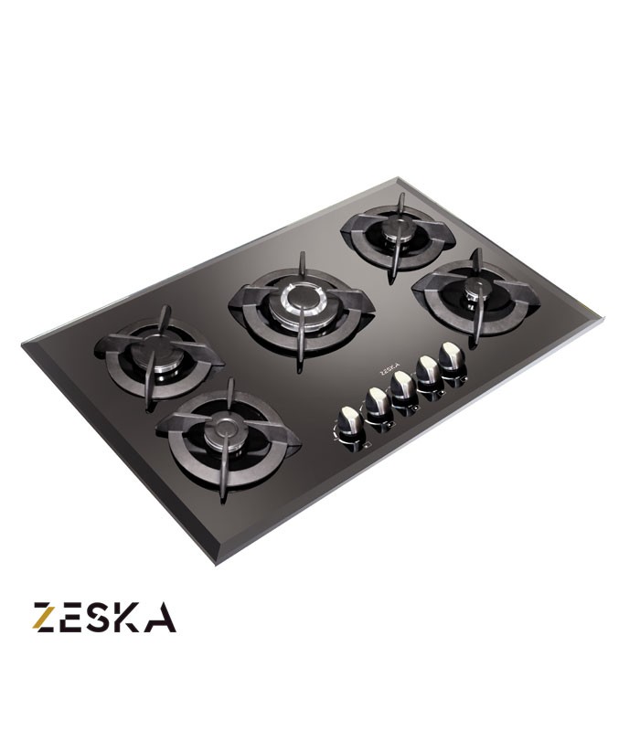 اجاق گاز شیشهای زسکا با ۵ شعله، ترکیبی از طراحی مدرن و دوام بالا است. ولومهای دو تکه باکالیت نسوز، کنترل شعلهها را آسان و دقیق میکنند.